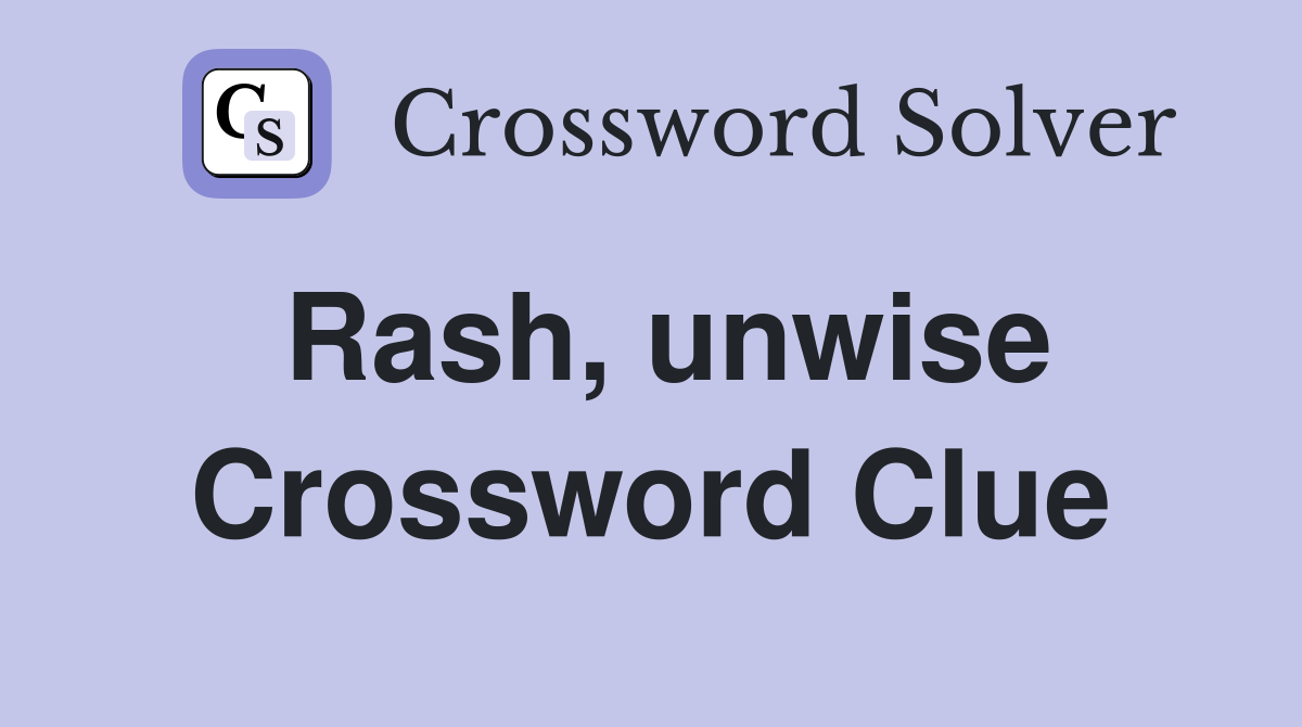 Rash unwise Crossword Clue Answers Crossword Solver