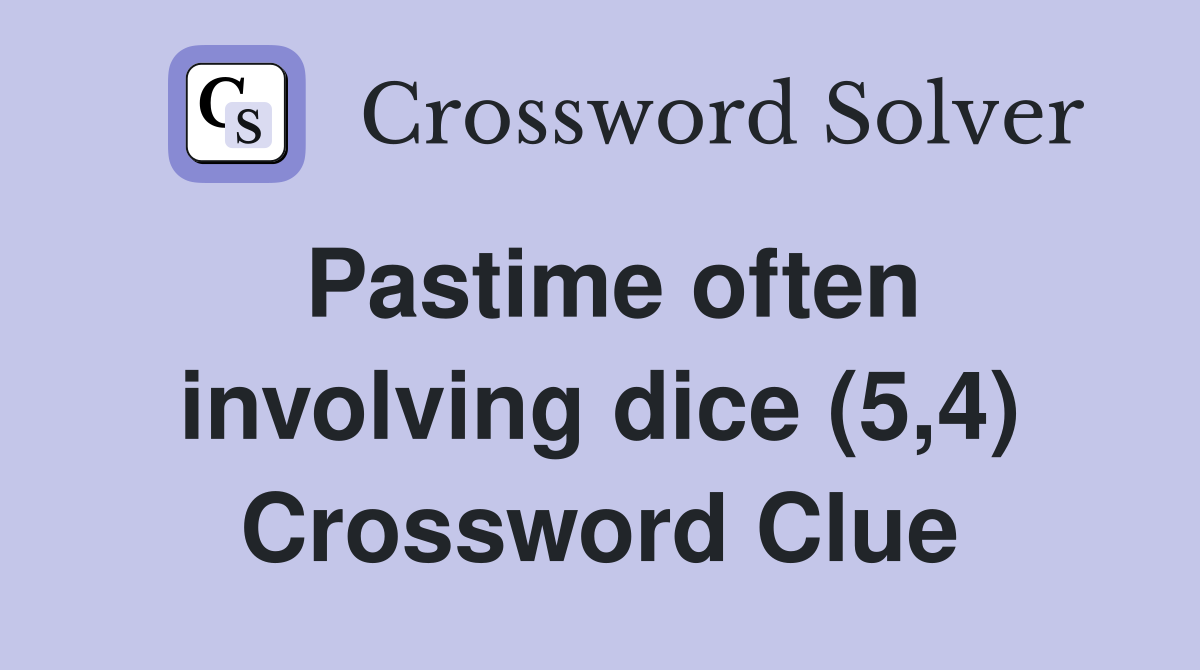 Pastime often involving dice (5 4) Crossword Clue Answers Crossword