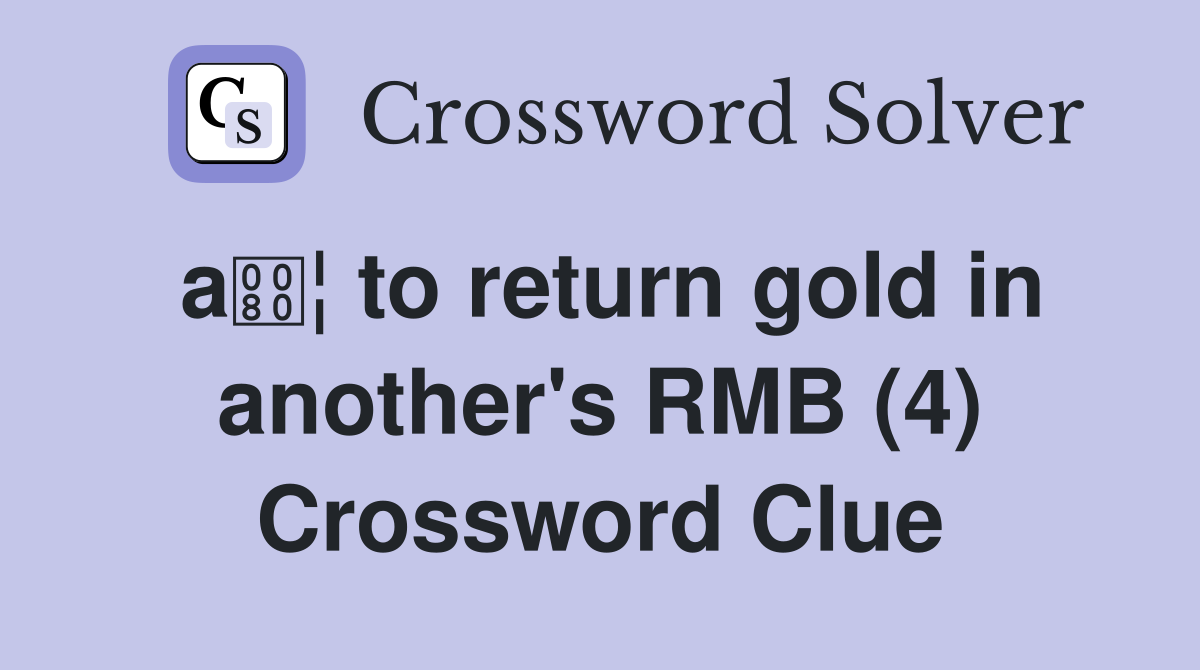 a ¦ to return gold in another #39 s RMB (4) Crossword Clue Answers