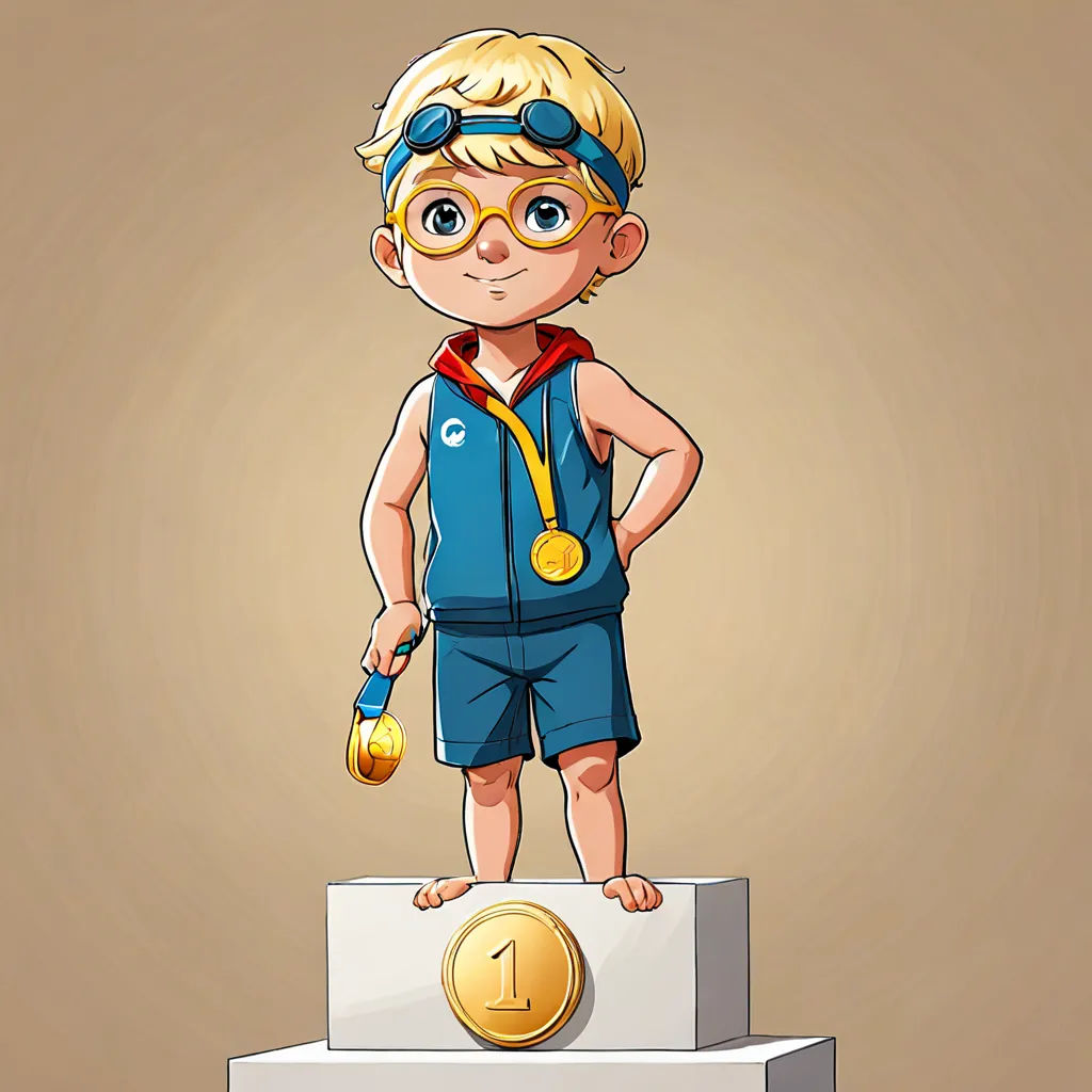 A swimmer with a gold medal surrounded by water droplets Sports winning