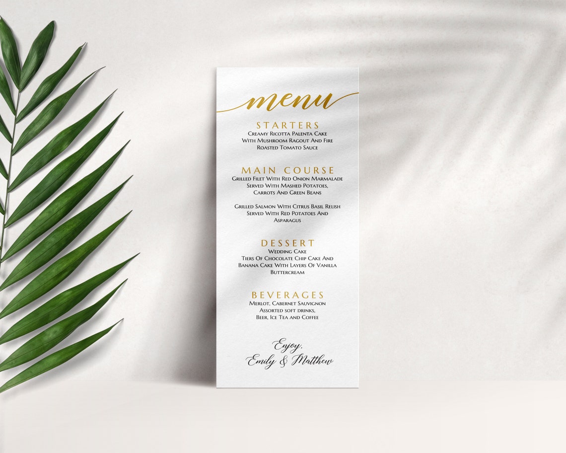 Gold Menu Template Wedding Menu Template Wedding Dinner Menu Etsy