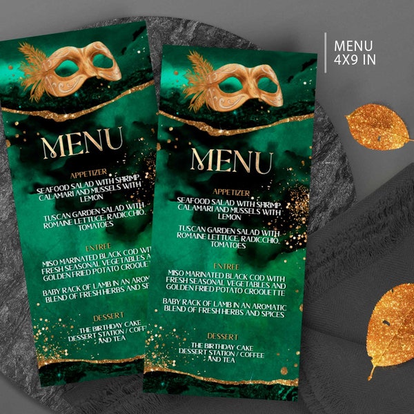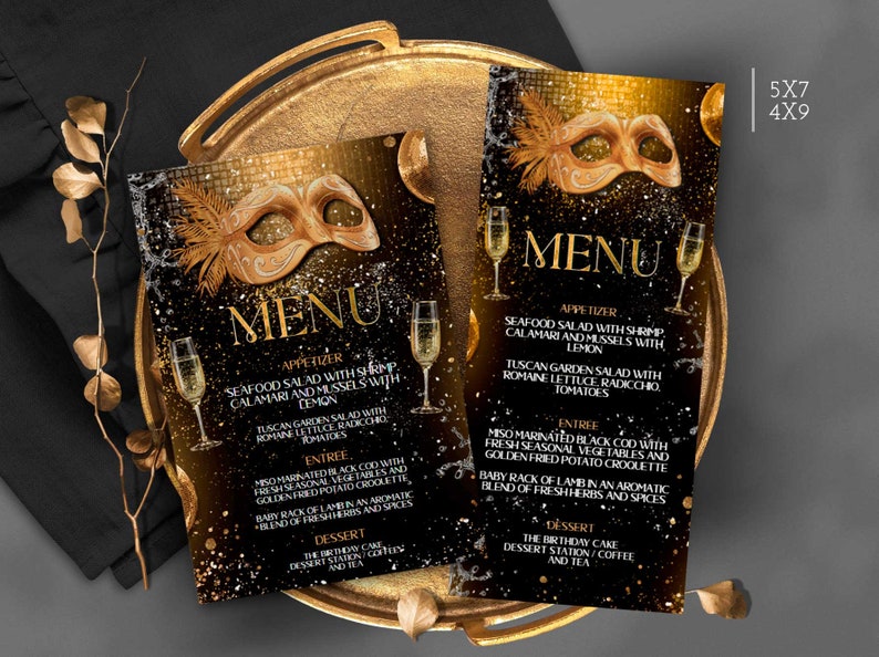 Masquerade Party Menu Card Black and Gold Menus Template Etsy