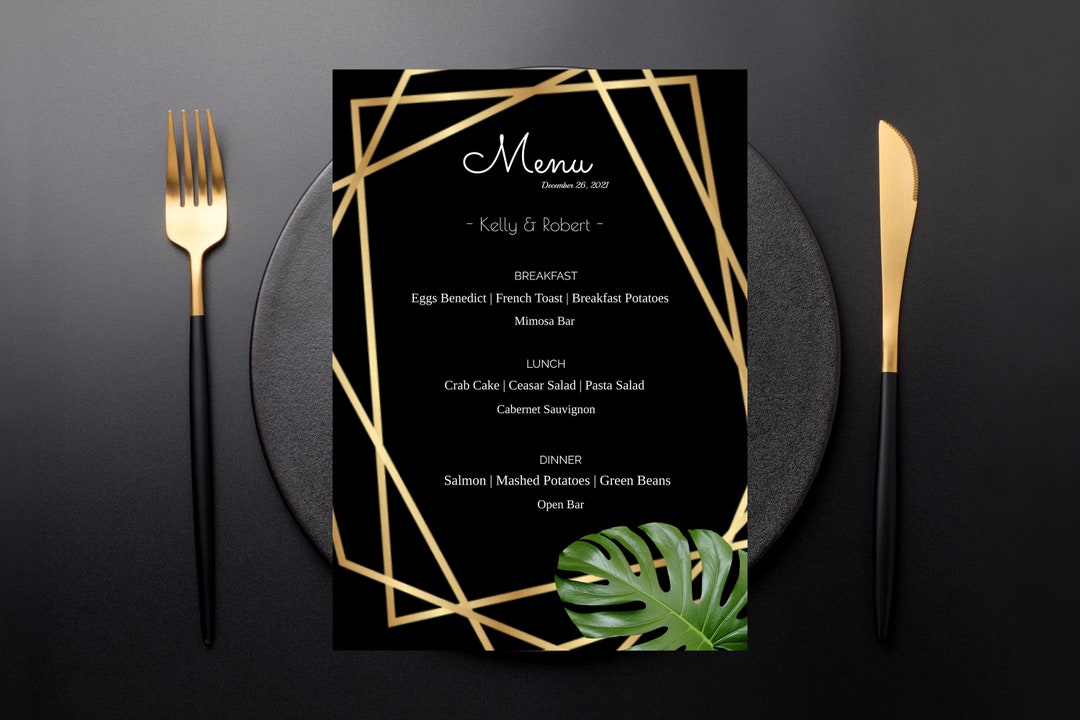 Black and Gold Menu Template Wedding Menu Template Menu Etsy