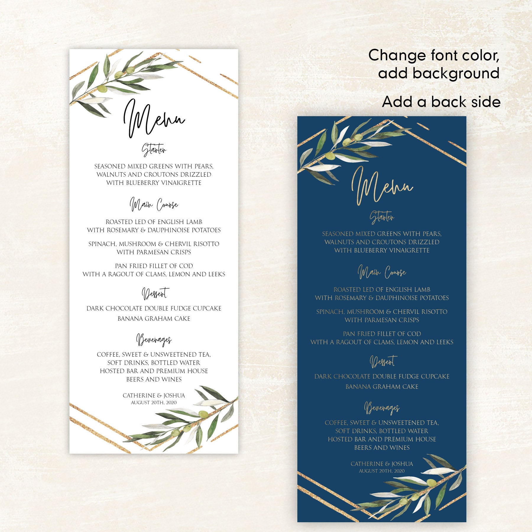 Gold Menu Template Printable Menu Cards Instant Download Etsy