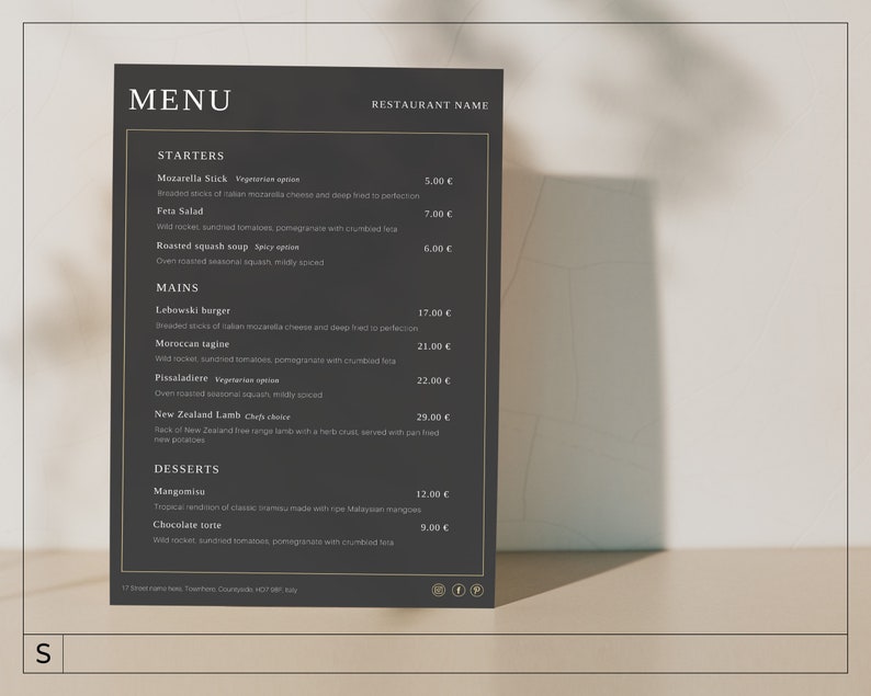 Black and Gold Menu Card Template Menu Template Modern Etsy
