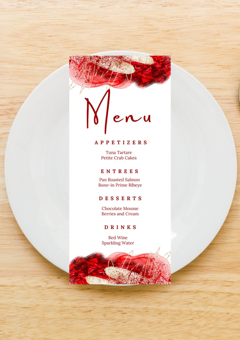 Editable Red and Gold Menu Template Birthday Dinner Menu Etsy