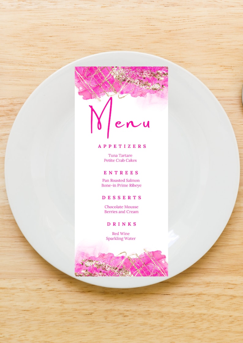 Editable Pink and Gold Menu Template Birthday Dinner Menu Etsy