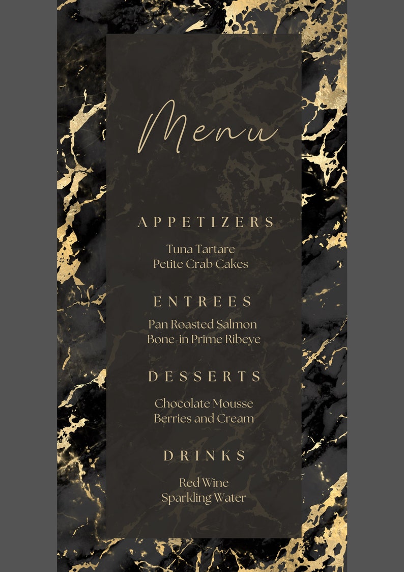 Editable Black and Gold Menu Card Template Marble Design Etsy