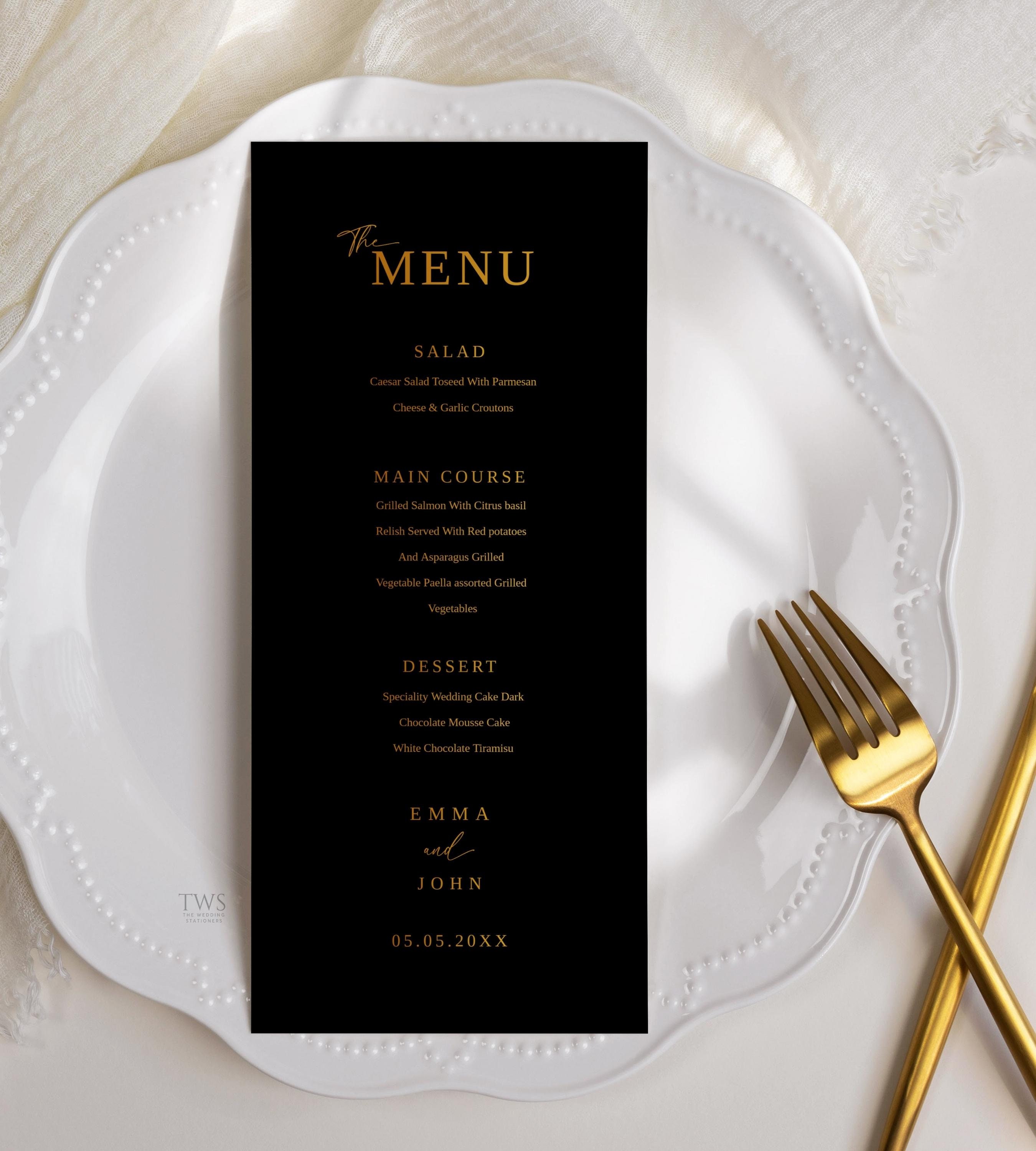 Black and Gold Menu Template Wedding Dinner Menu Instant Download