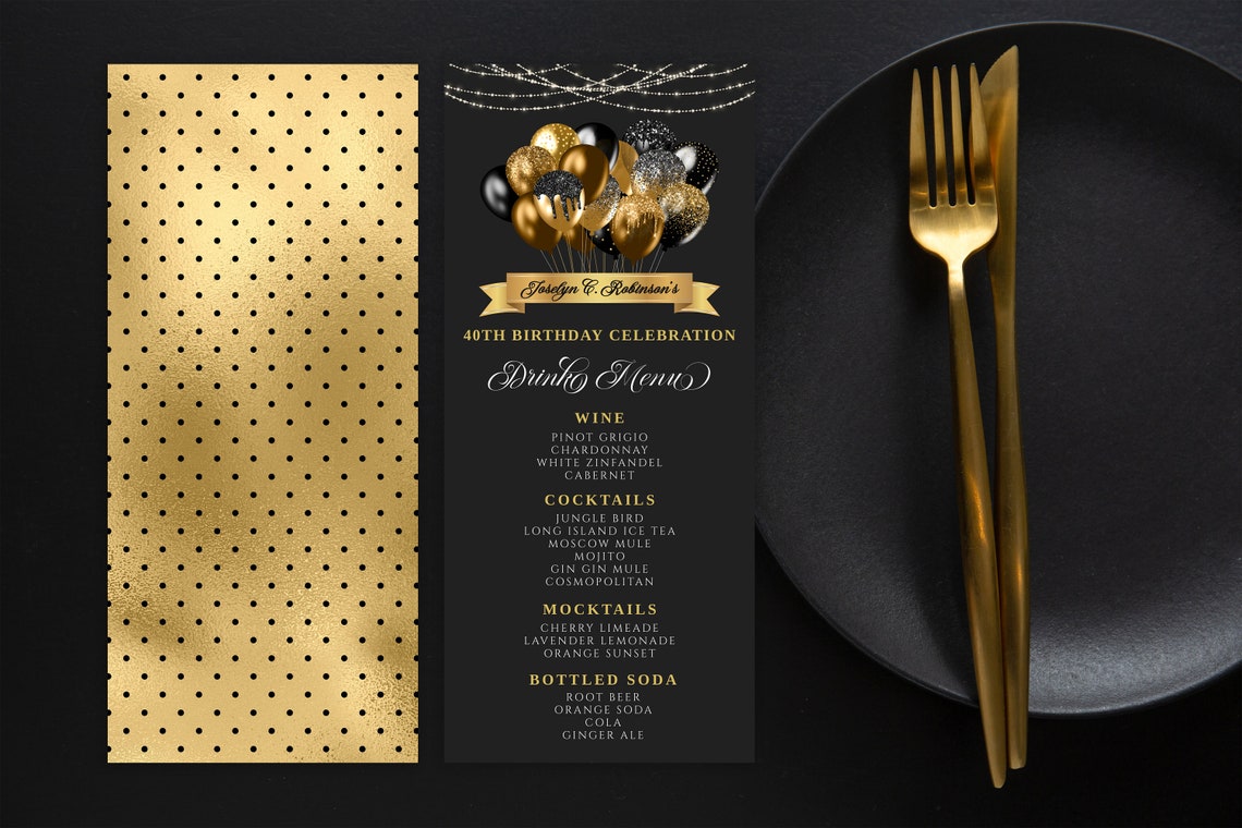 Black and Gold Menu Template and Drink Menu Event Menu Etsy