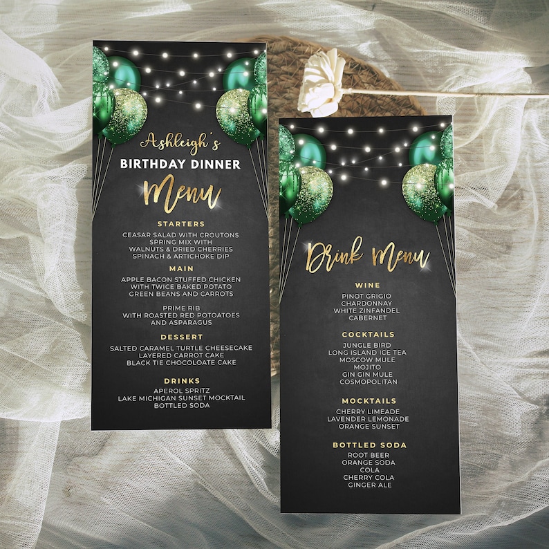 Emerald Green and Gold Menu Template and Drink Menu Event Menu Etsy