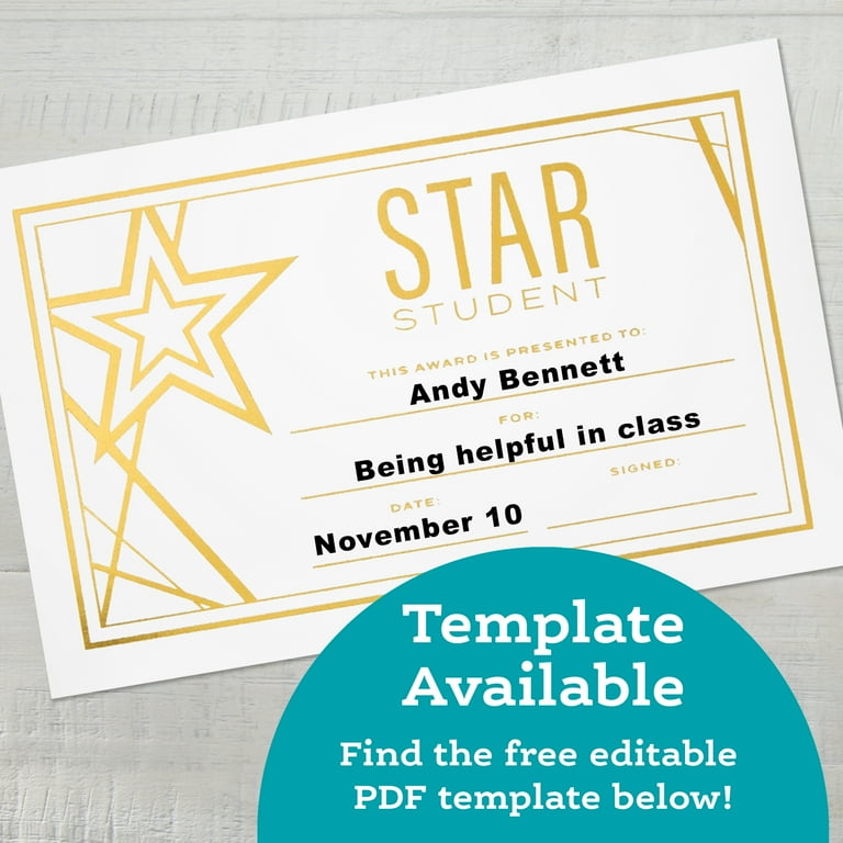 Editable Printable Award Gold Star Certificate for Kids Teacher