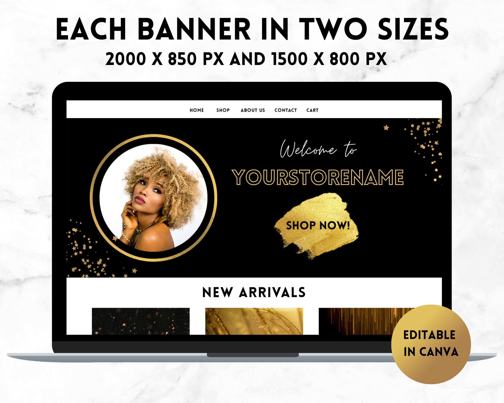 Black and Gold Website Banner Web Banner Template in Canva DIY Web