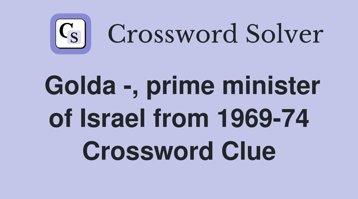 Golda prime minister of Israel from 1969 74 Crossword Clue Answers