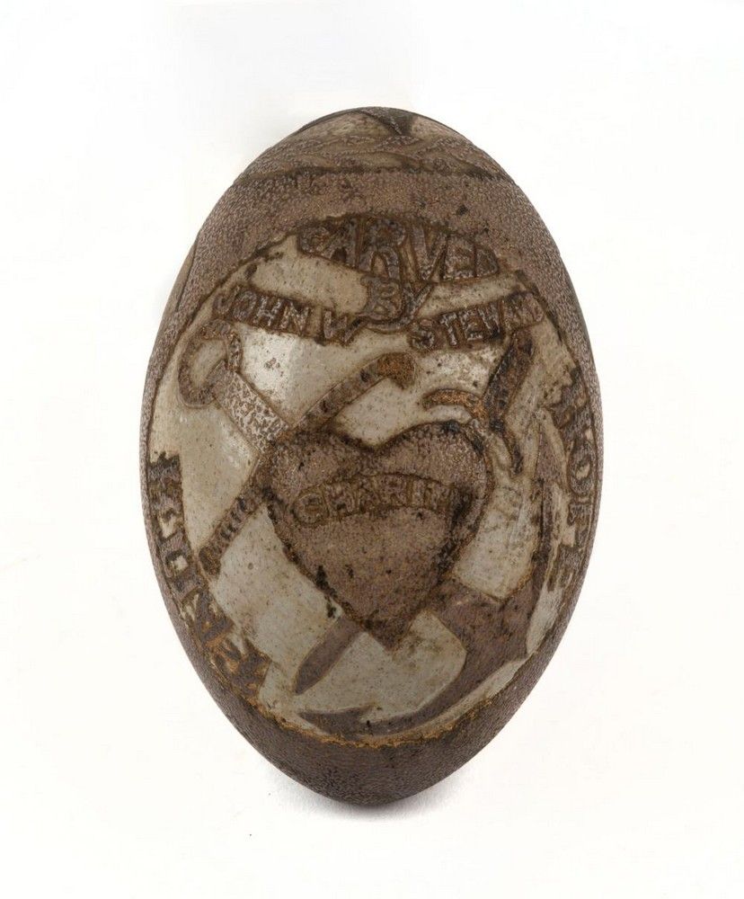 Antique Carved Emu Egg: Golden Fleece Ship Portrait 1888 Eggs