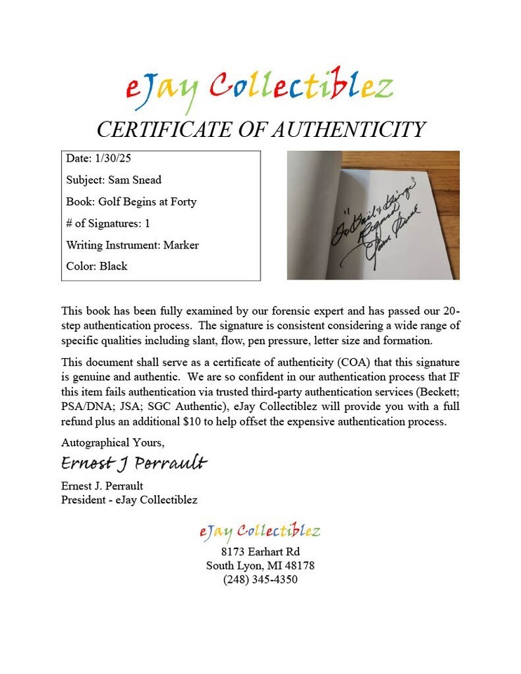 Golf Begins at Forty by Sam Snead (1995 Reprint) Signed Personalized