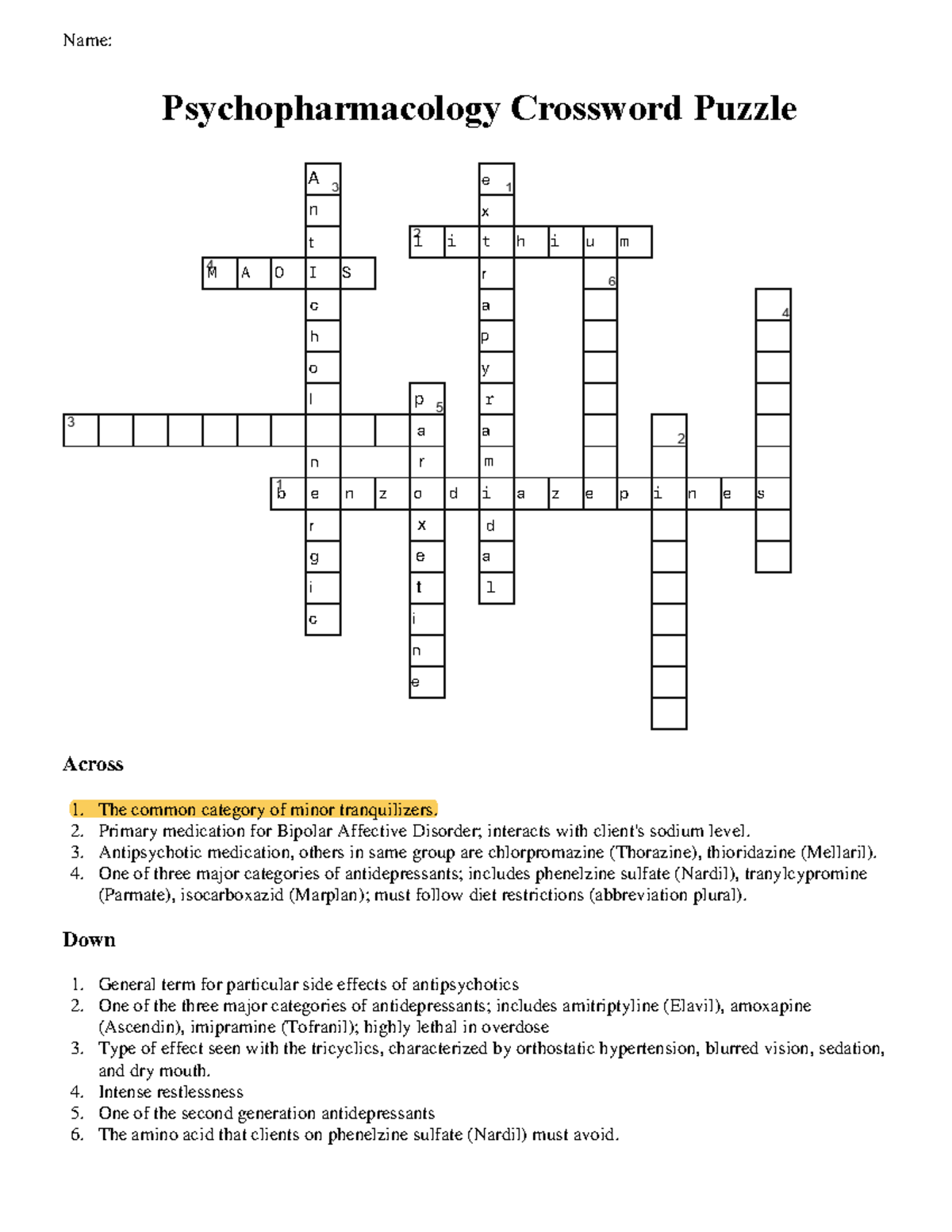 Crossword Psych meds Name: Psychopharmacology Crossword Puzzle Across