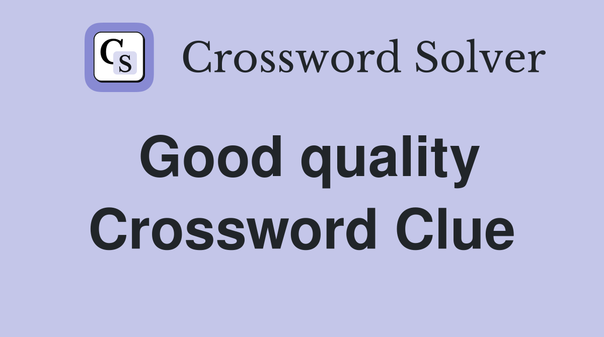Here are some of the images for Good Quality Crossword Clue that we found in our website database.