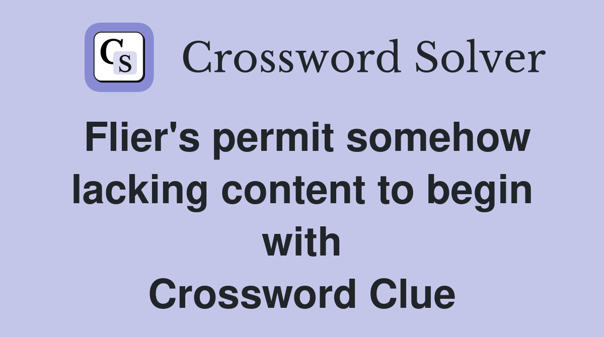 Flier #39 s permit somehow lacking content to begin with Crossword Clue