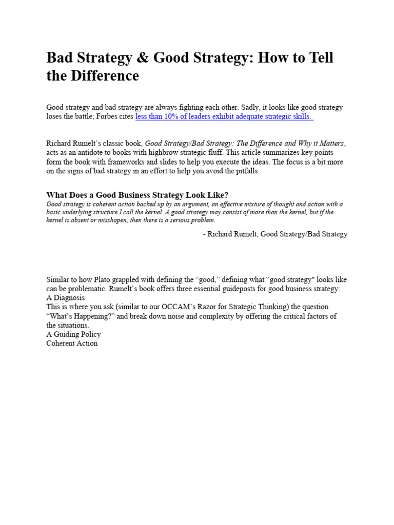 Executive Summary quot Good Strategy Bad Strategy quot DODReads Ryan Morales