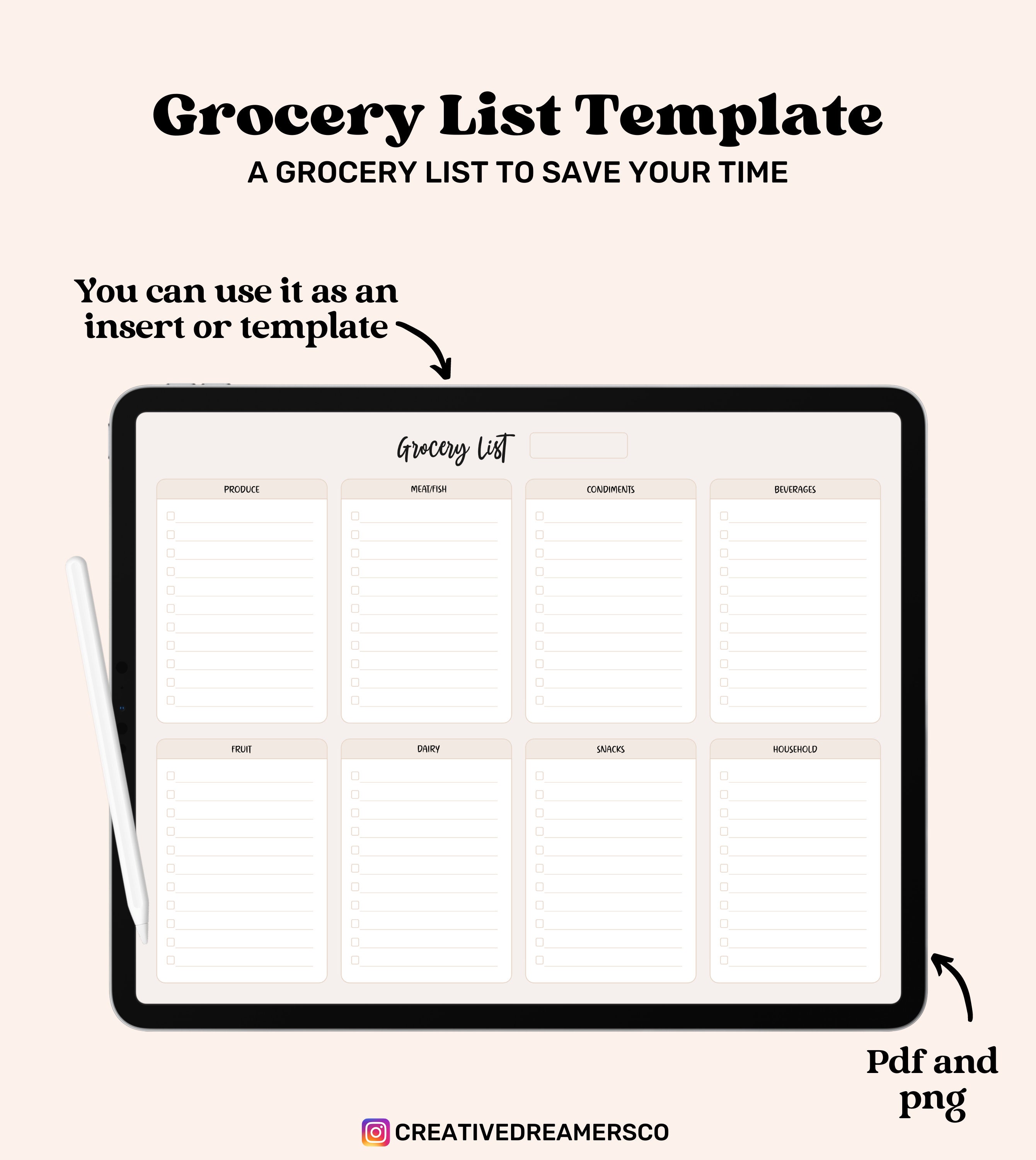 Digital Grocery List Template Grocery List Ipad Pdf Download