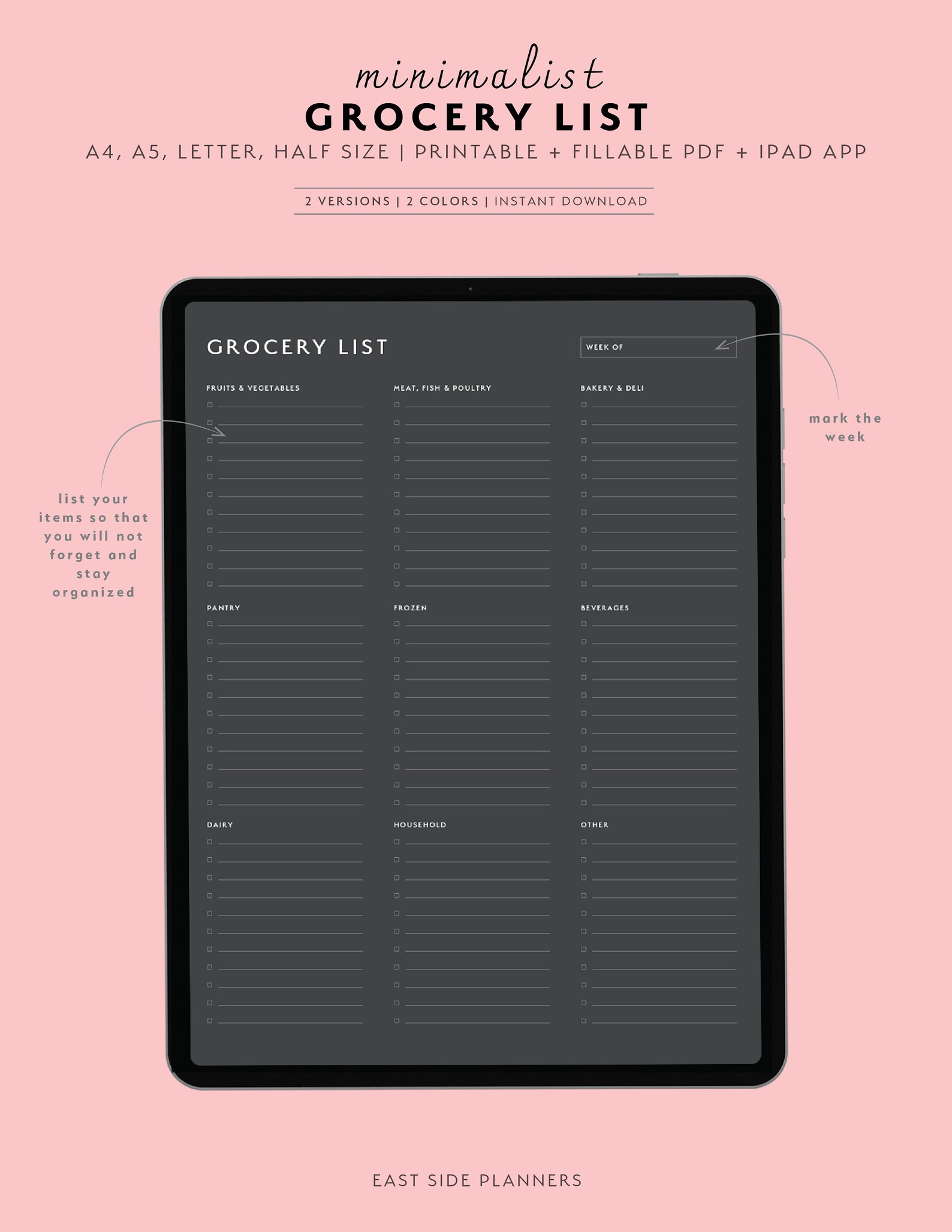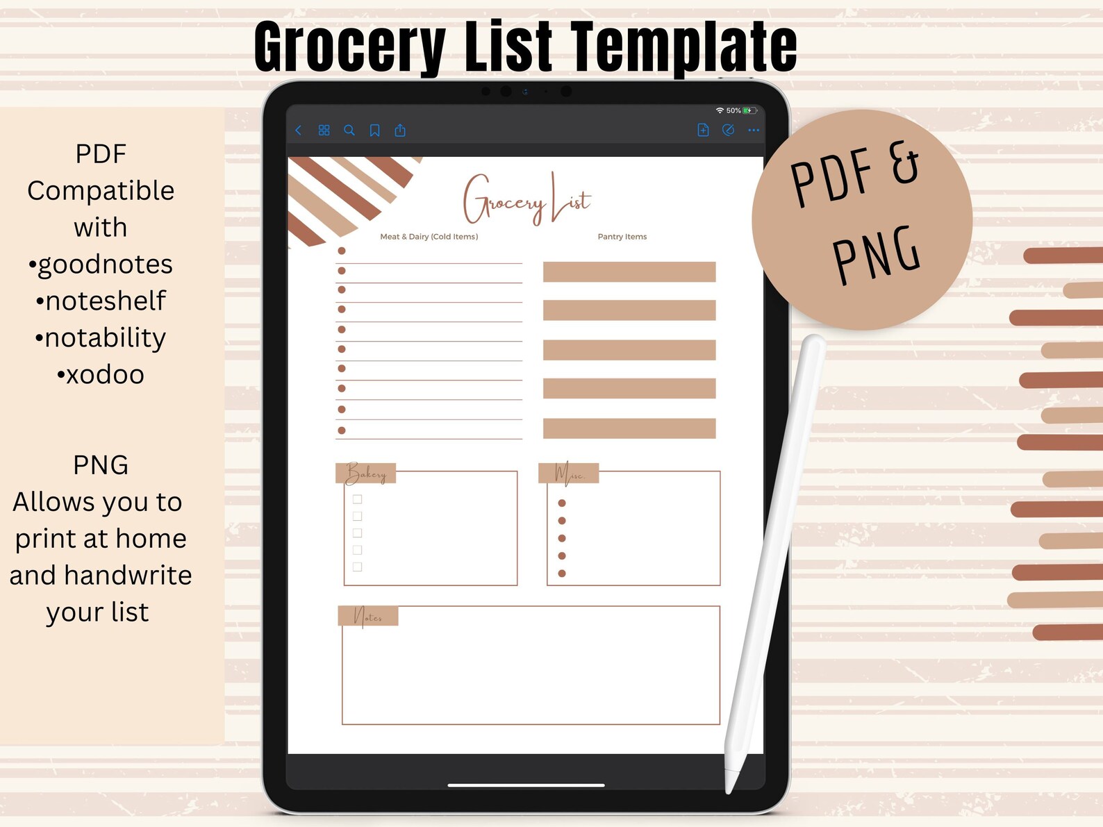 Grocery List Goodnotes Template Digital Planner iPad Planner Digital