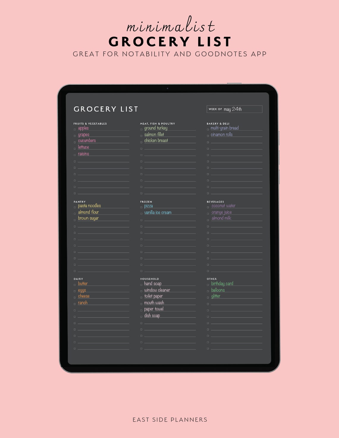 Simple Grocery List Digital Template for Goodnotes Notability Xodo Ipad