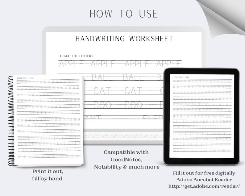 Handwriting Workbook Bundle Printable iPad Templates for Goodnotes
