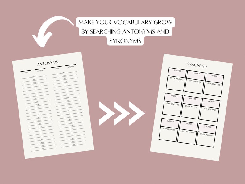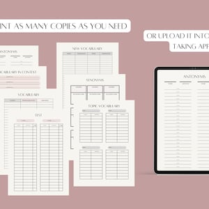 Vocabulary Language Learning Notebook Set Worksheets Printable