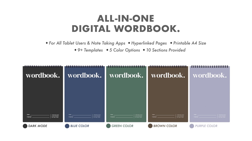 All in One Digital Vocabulary Wordbook for Language Study 5 Colors