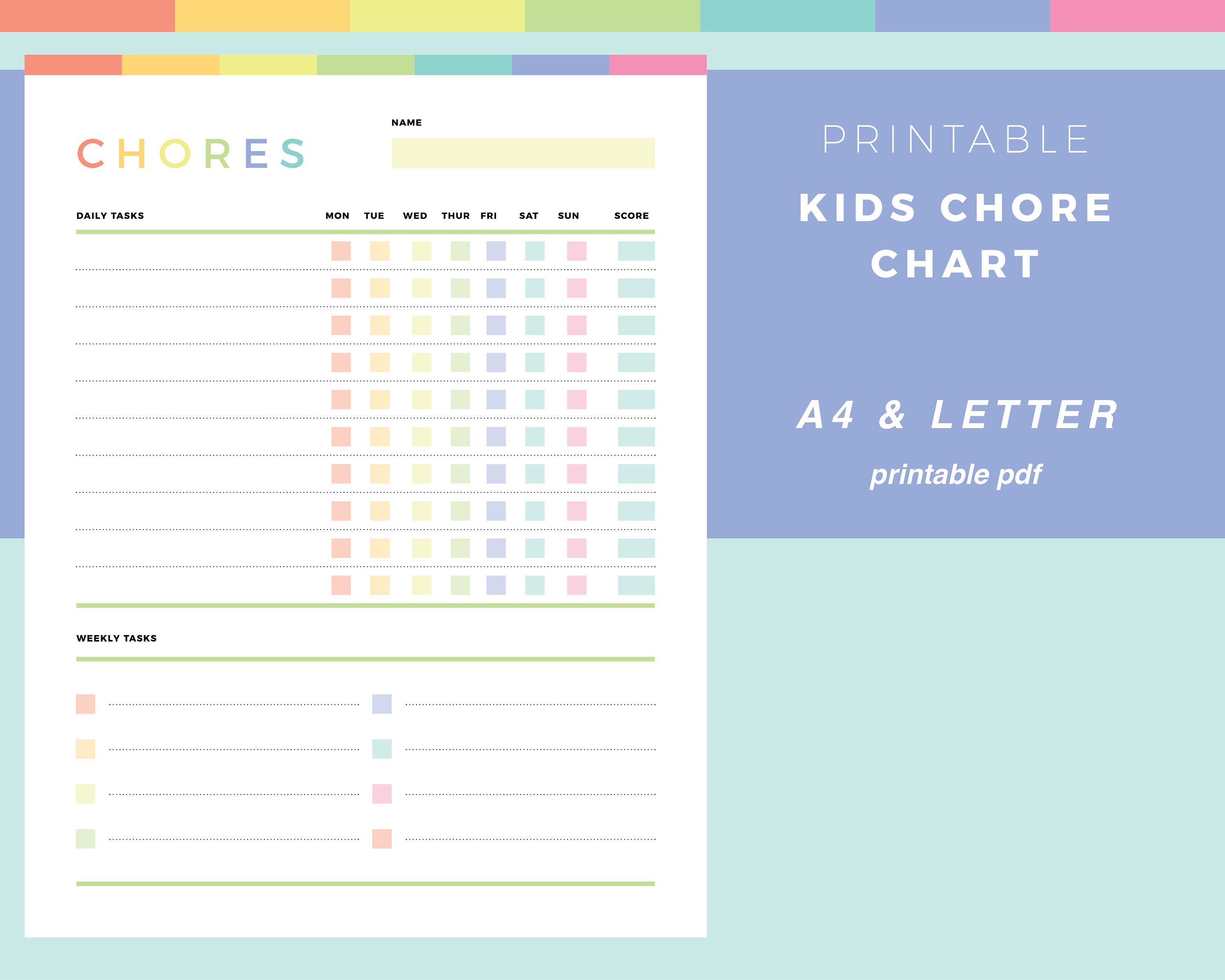 PDF Children Printable US Letter Size A4 Size OneNote Kids Chore List