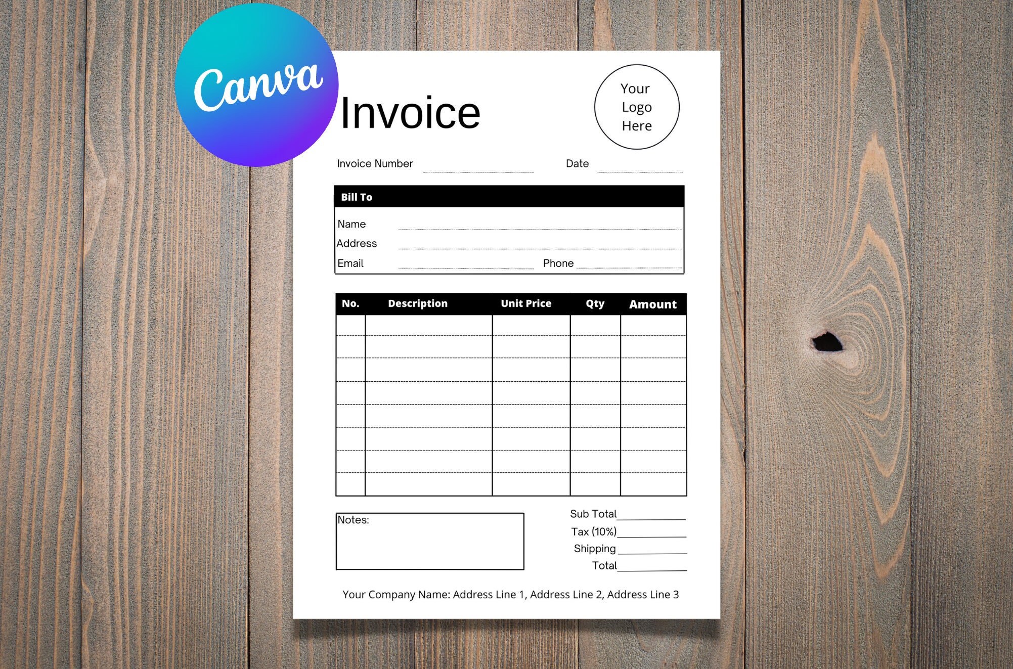 Invoice Template Goodnotes Onenote Canva A4 US Letter Size Printable