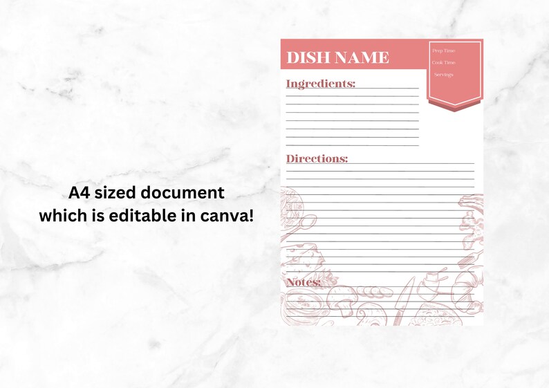 Recipie Template Printable Editable Size A4 Goodnotes Etsy