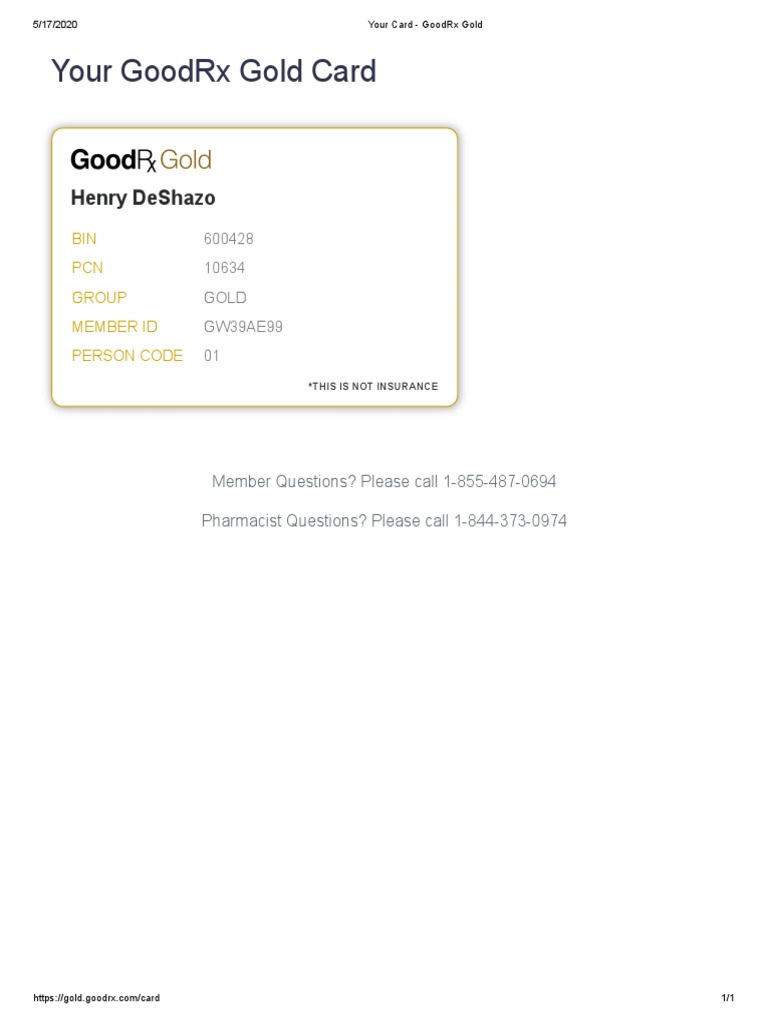 GoodRx Gold ™ Pharmacy (50% OFF) Discount Card? Prescription Mail