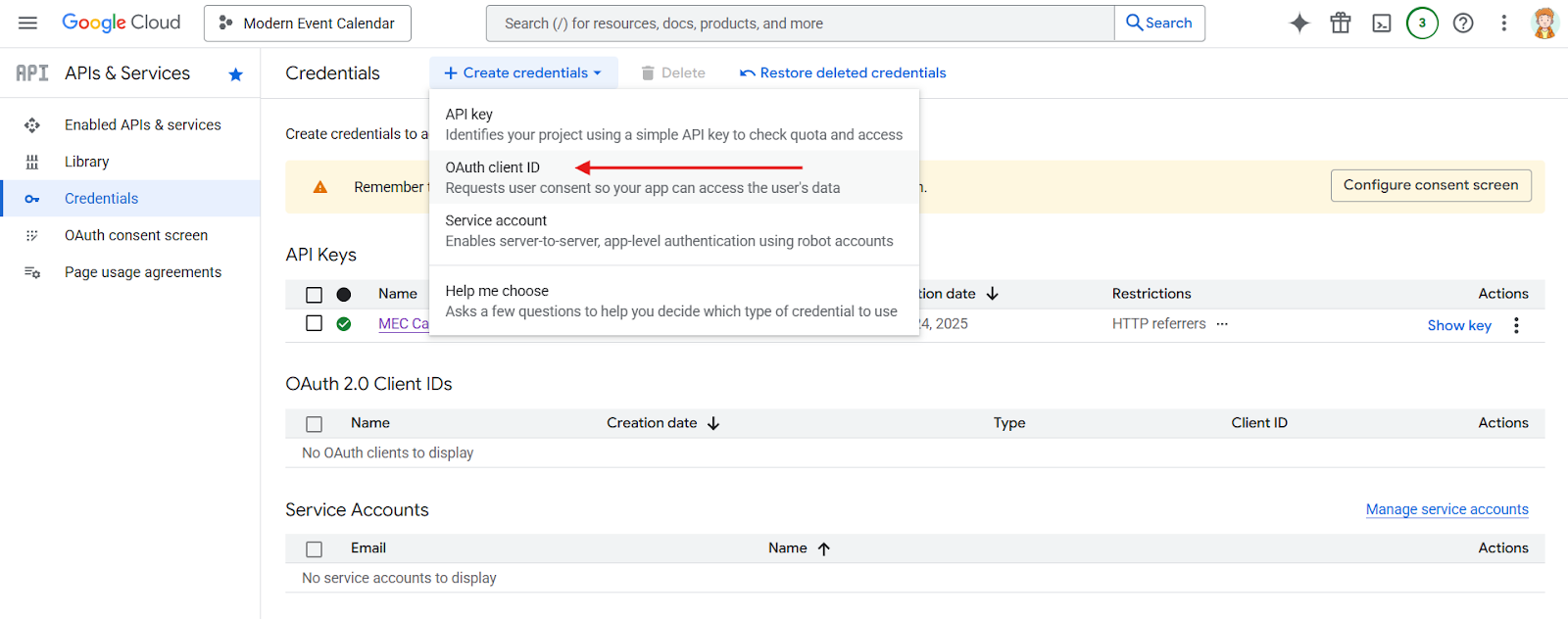 Creating Google Calendar API Key MEC Knowledgebase