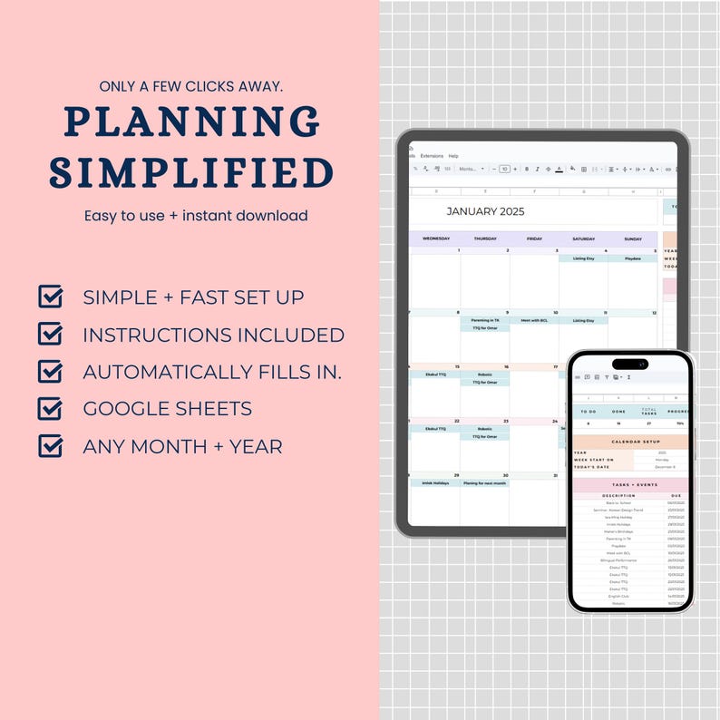2025 Calendar Annual Planner Google Sheets Yearly Calendar Monthly