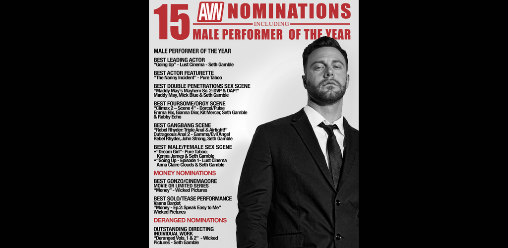 Seth Gamble Receives 15 Nominations for 2023 AVN Awards AVN
