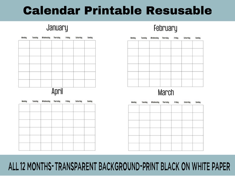 Undated Calendar Printable Monthly Blank Calendar Minimalist ADHD