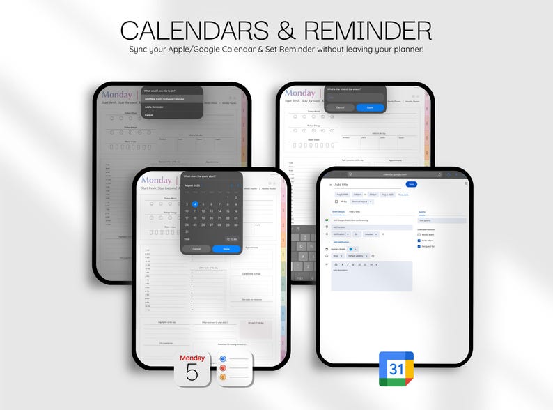 Digital Planner Daily Spreadsheet Google Sheet Monthly Calendar