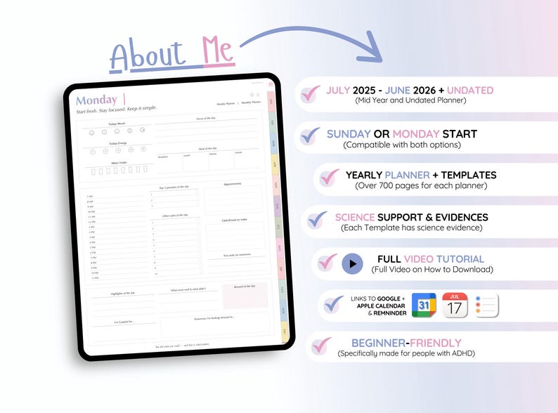 2025 2026 ADHD Digital Planner ADHD iPad Android Hyperlinked Planner