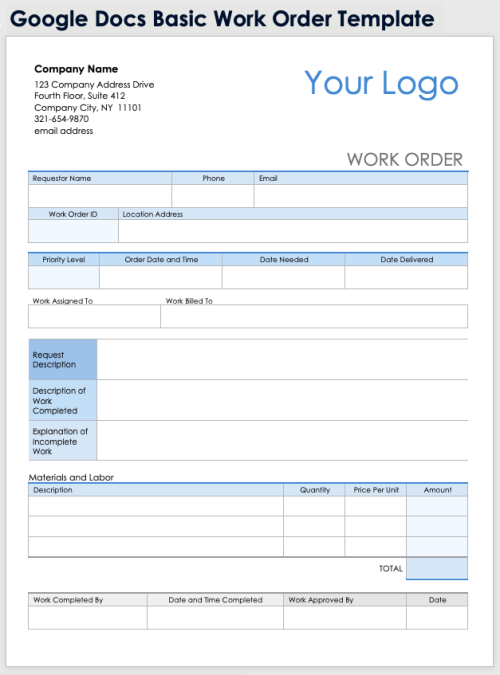 Google Docs Work Order Template
