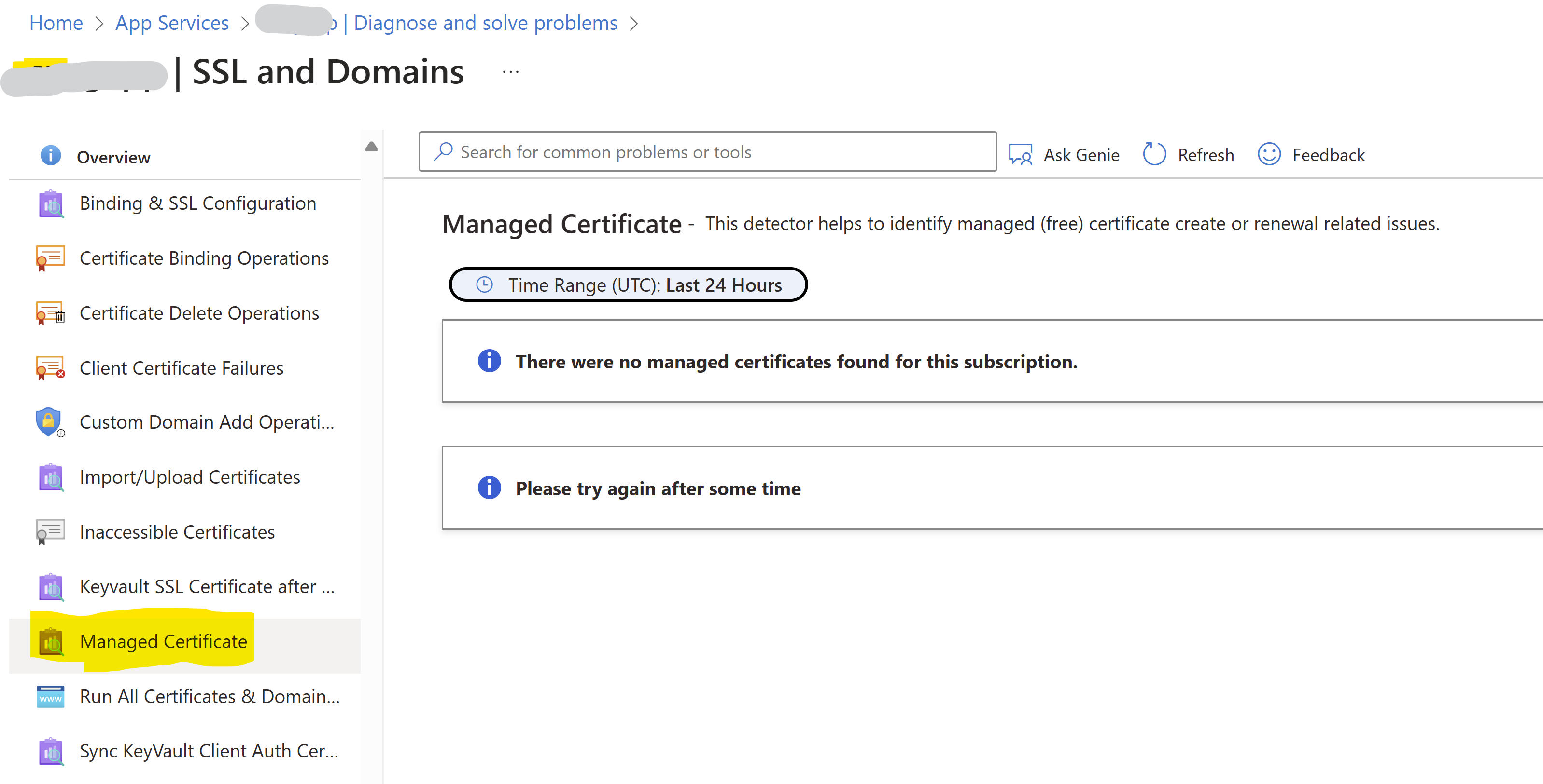 Can not create a Managed Certificate in App Service Microsoft Q A