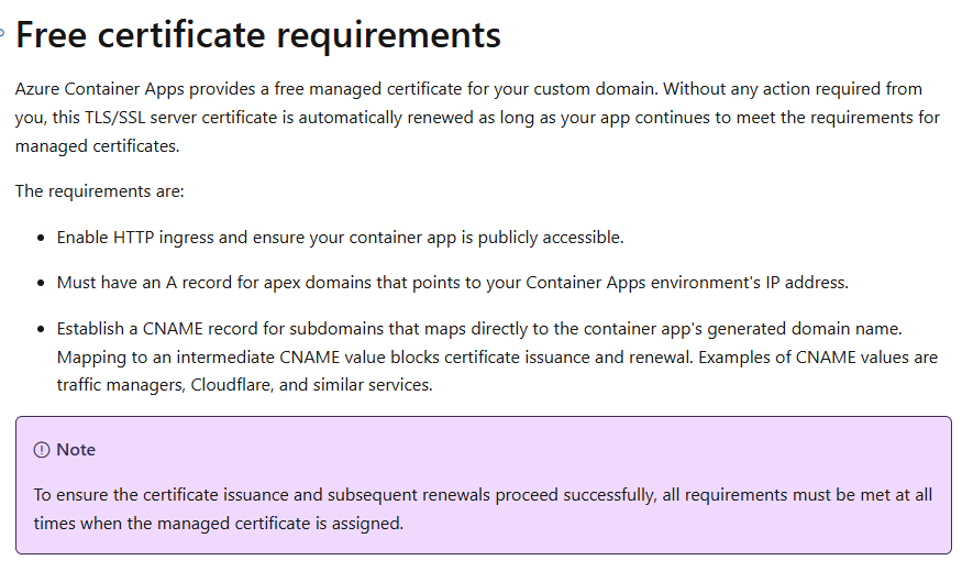 Issue with managed certificate creation for azure container app