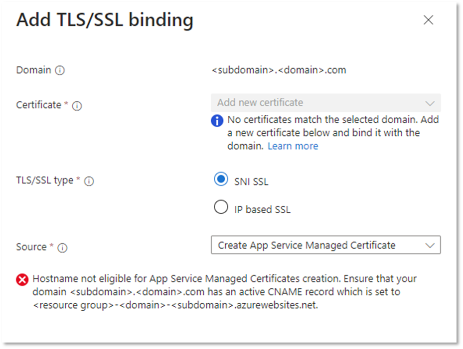 Failed to create App Service Managed Certificate: Pending managed