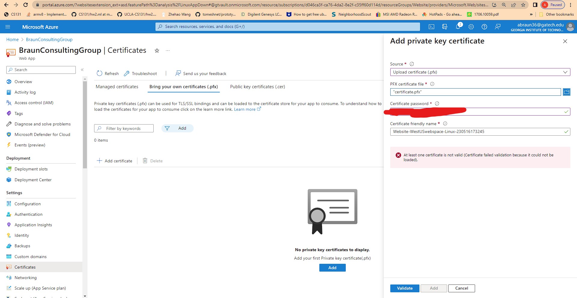 At least one certificate is not valid (Certificate failed validation