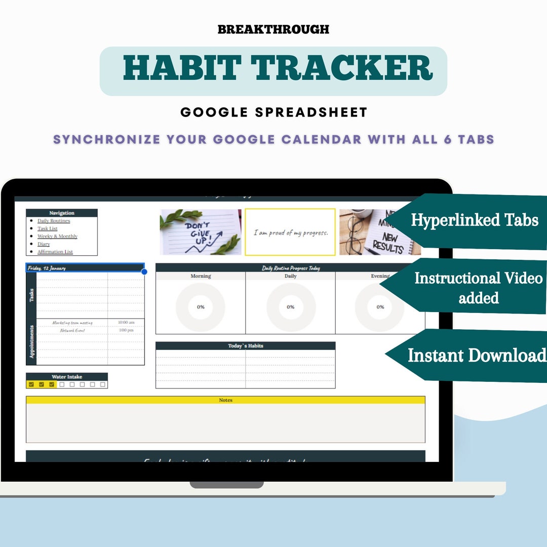 Google Sheet Habit Tracker Excel Spreadsheet Daily Habit Planner Weekly