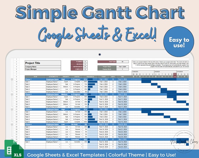 Project Tracker Google Sheet Gantt Chart Project Planner 52% OFF