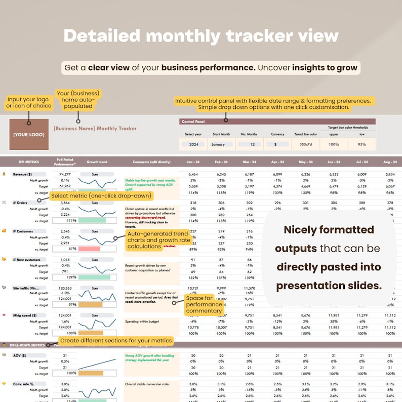 Business Performance Tracker KPI Dashboard Monatlicher Tracker mit