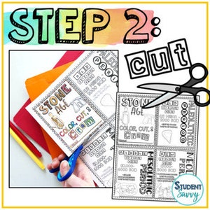 Stone Age Color Cut Cram Coloring Pages Notes Word Search