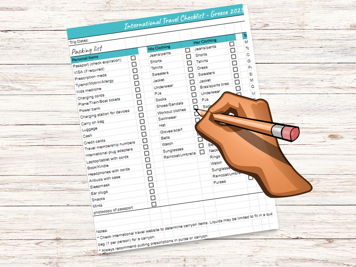 International Packing List Template Google Sheets Packing List Etsy